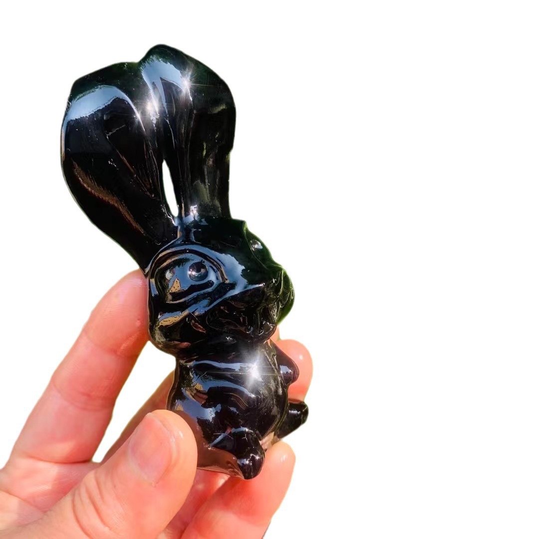 貨號: 7893735211208-天然水晶黑曜石雕刻件长耳兔水晶小摆件 分類: , 標籤:
