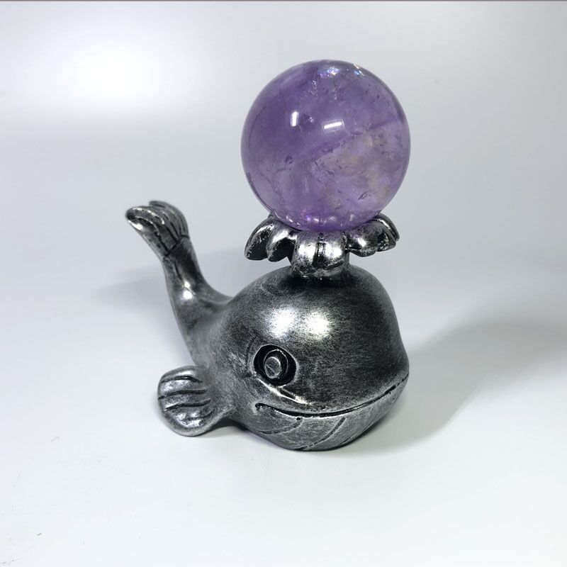树脂雕花水晶球底座小鲸鱼球座摆件时尚创意家居装饰鲸鱼桌面饰品