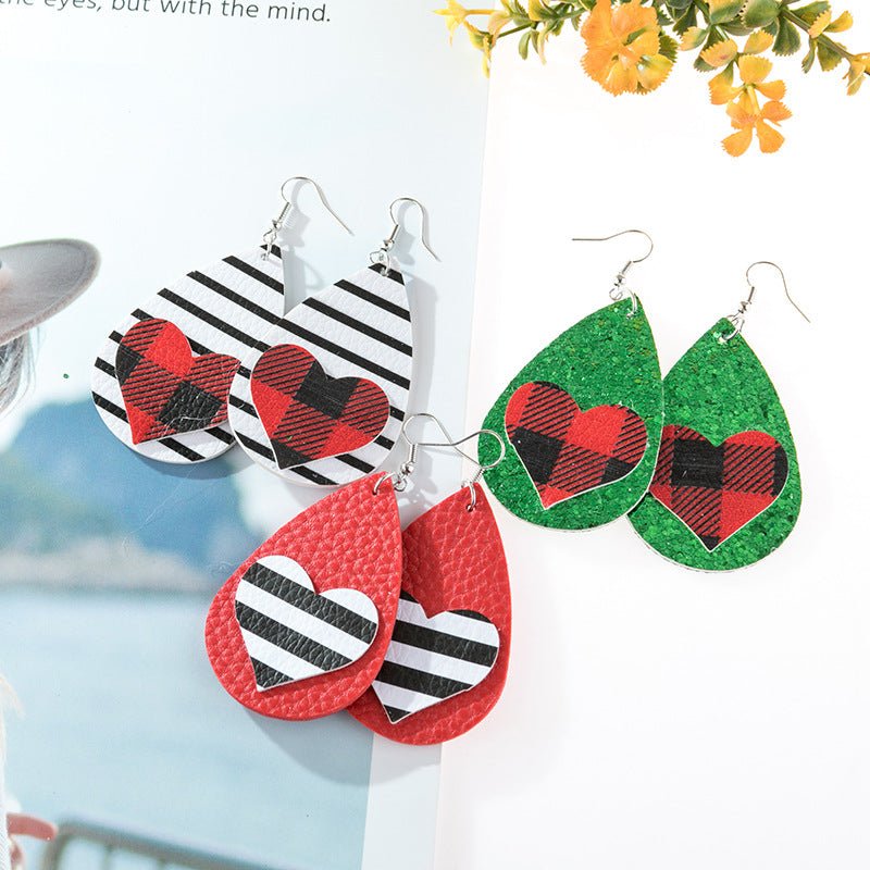 貨號: 7038781194440-欧美时尚耳饰-欧美心形皮革耳环套装-情人节爱心pu皮革耳饰-情人节礼物-1 分類: