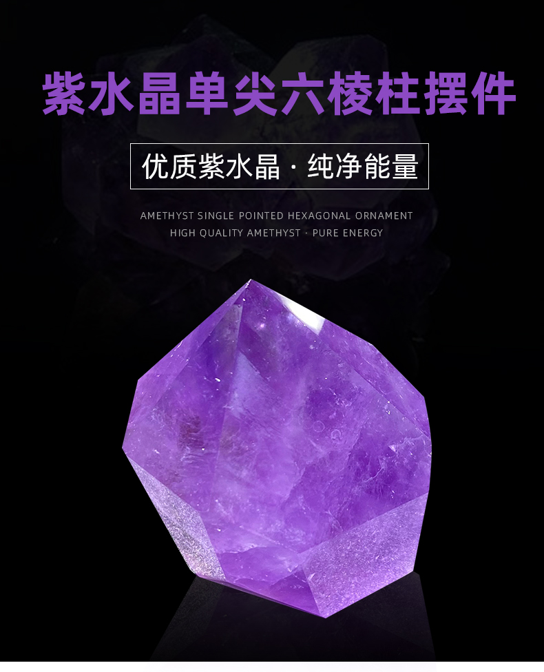 貨號: 6182254084296-能量水晶正品-天然紫水晶单尖柱摆件六棱柱能量水晶疗愈石冥想把玩居家摆件装饰