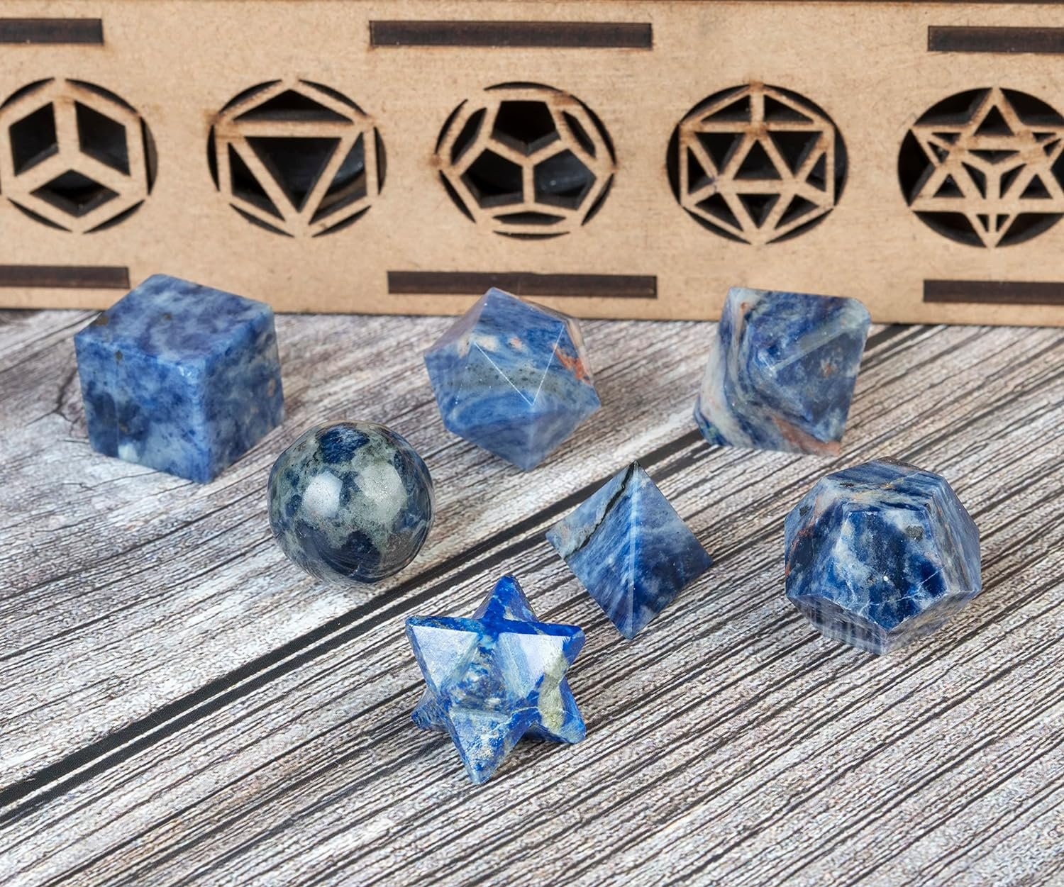 进口 Crocon Sodalite 7件柏拉图式固体水晶几何套装,柏拉图式固体神圣几何宝石冥想灵气平衡治疗脉轮石清洁精神好运 (15-20mm)